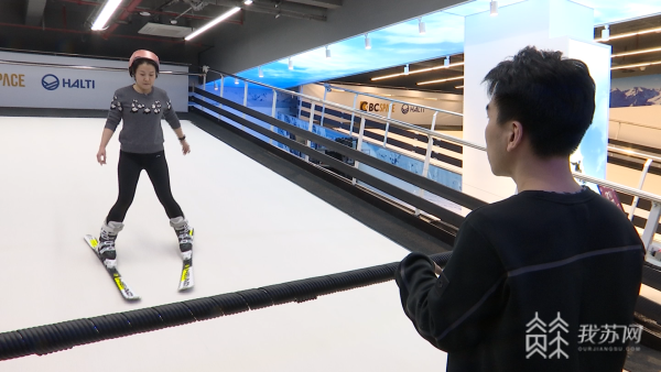 南京边城体育滑雪运动教练刘超说:“这是给运动员在非雪季用来训练的机器,我们机器的速度和坡度都是可以调整的,摩擦力会比雪上大一点,某种程度上来说,比雪场难度更大一些。”