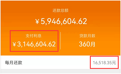 房贷利率5.85%,支付利息总额314.660462万元,每月还款16518.35元