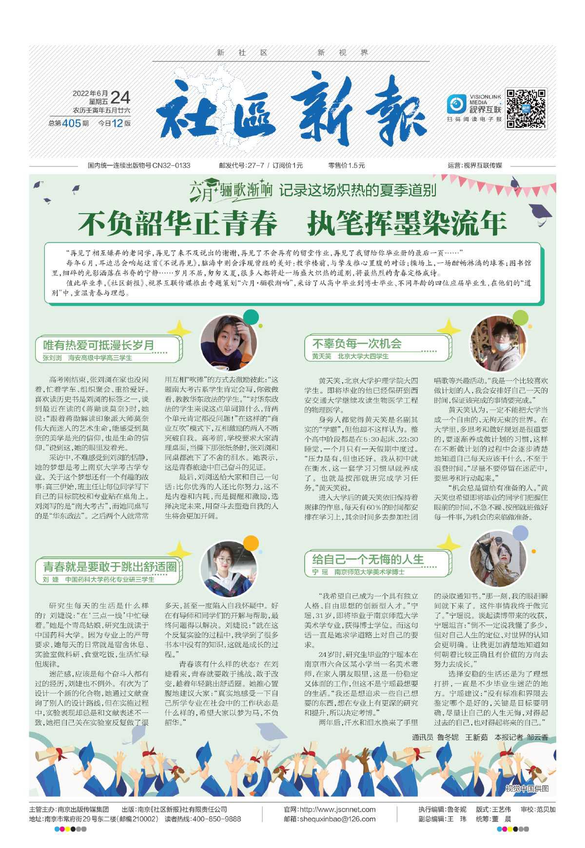 值此毕业季,《社区新报》、视界互联传媒推出专题策划“六月·骊歌渐响”,采访了从高中毕业到博士毕业、不同年龄的四位应届毕业生,在他们的“道别”中,重温青春与理想。