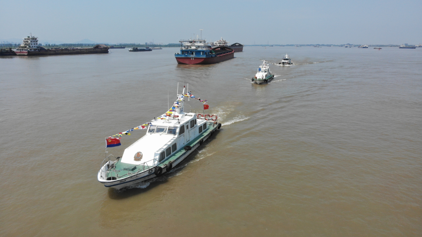 为迎接第18个中国航海日的到来,7月11日,扬州派出所联合征润州海事处、六圩绿色综合服务区前往定易州锚地水域开展“我为船民送清凉”活动。