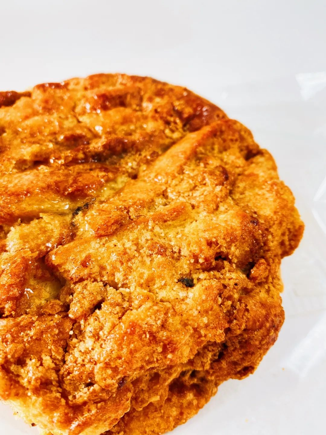 店里最受欢迎的是12元一个的“好吃的面包”,很多老客也叫它“丑面包”。外表看起来平平无奇,但拿在手上沉甸甸的,很有份量。