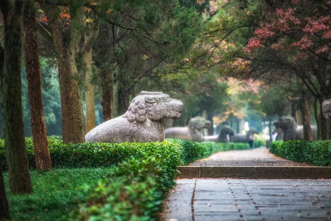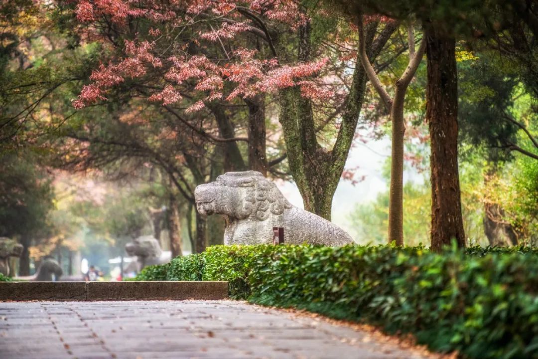 秋天,明孝陵——“最美600米”石象路,上帝的调色盘打翻在此。