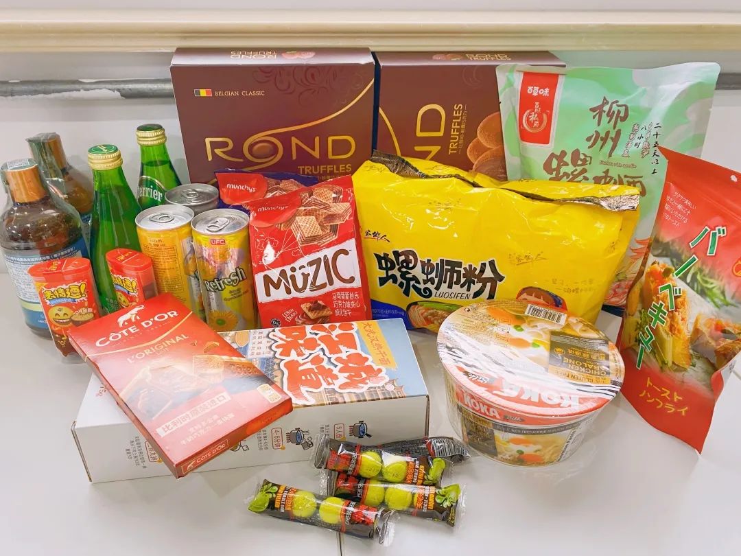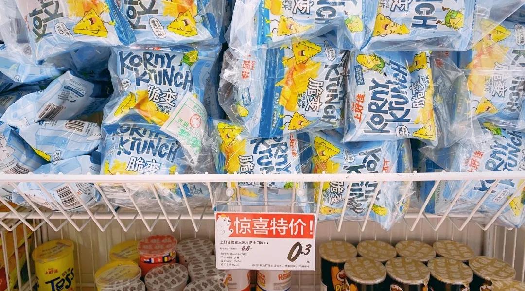 环顾店里一圈,0.3元的玉米片、1元的网球夹心泡泡糖、2.9元的马奇新新威化饼干、3元多的巴黎水和一大包的螺蛳粉……四舍五入等于不要钱!