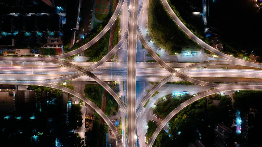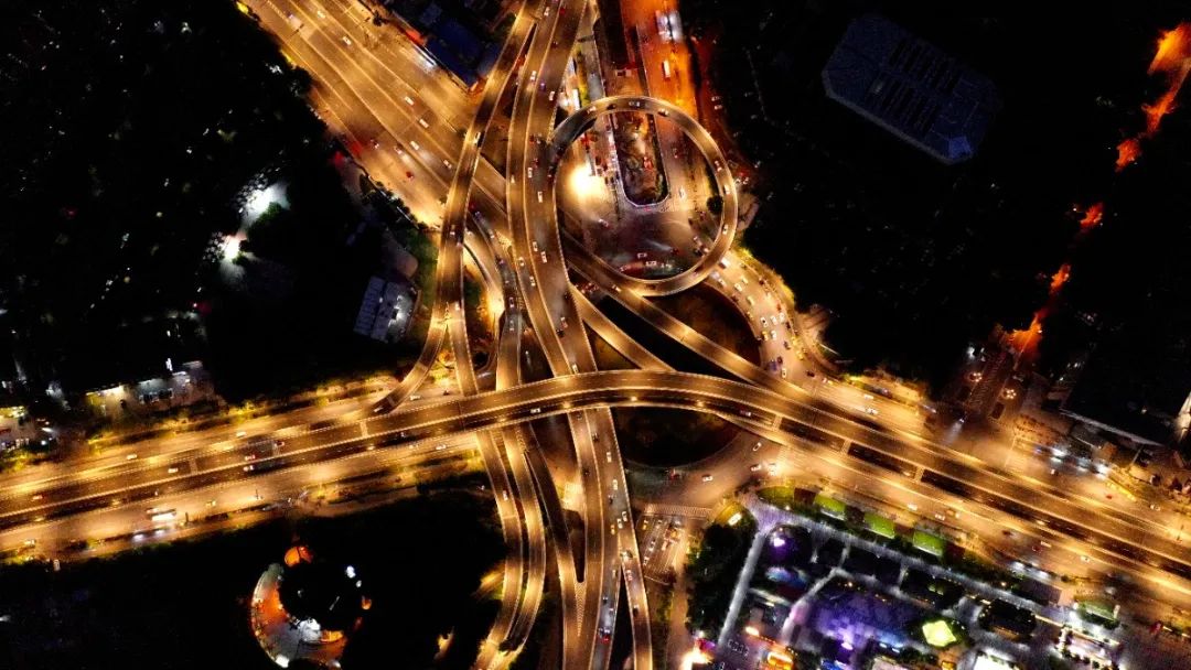 华灯初上,勾勒出灯火辉煌的立交桥轮廓,给城市都镀上了一层金。