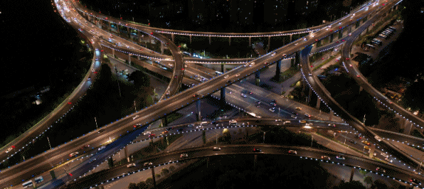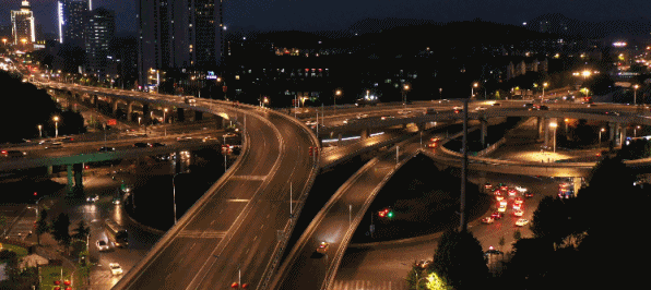 车辆闪着灯呼啸而过就如夜空中闪烁的星光,与被夜幕笼罩的城市交相辉映,赏心悦目。