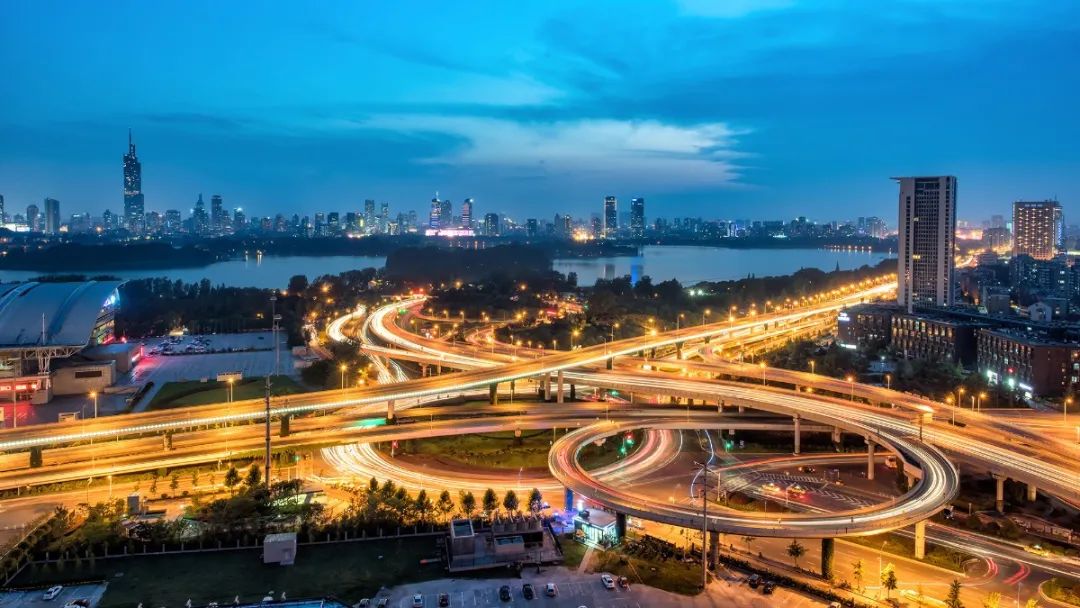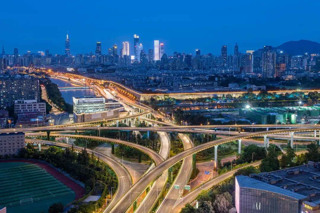 夜晚美丽的立交桥像是“凤凰涅槃”盘旋在这座金陵古城。