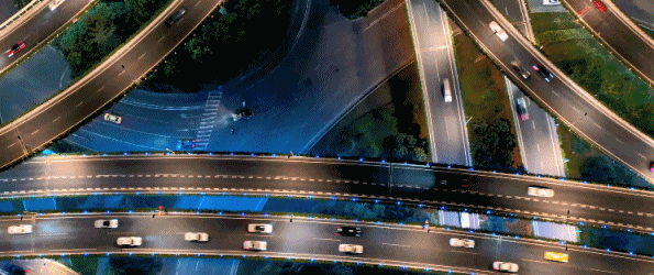车辆像纵横飞扬的音符在偌大的五线谱上流动。
