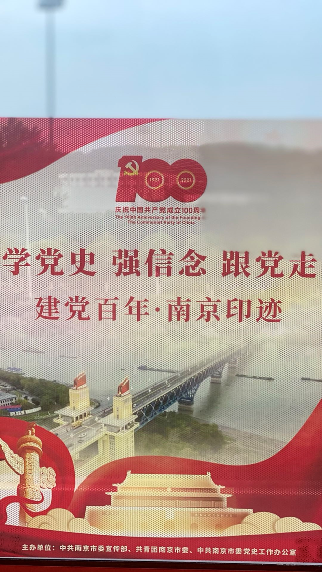在南京的大街小巷,都能看见庆祝建党100周年相关元素,让人们心里满满都是感动。(此处特别感谢更南京粉丝投稿)