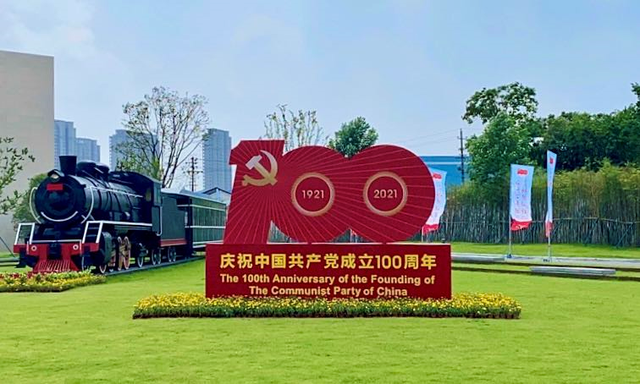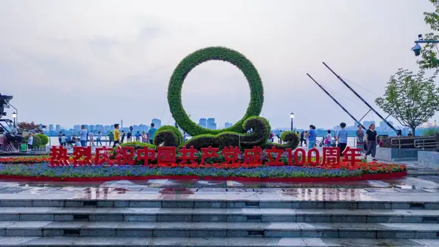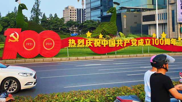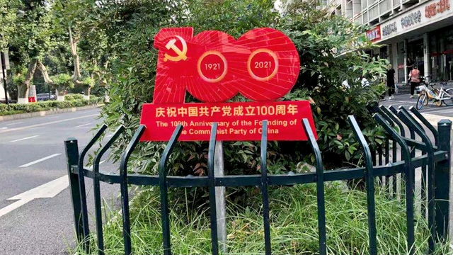 在南京随处可见庆祝建党100周年的标志性装置,你的身边应该也有很多!